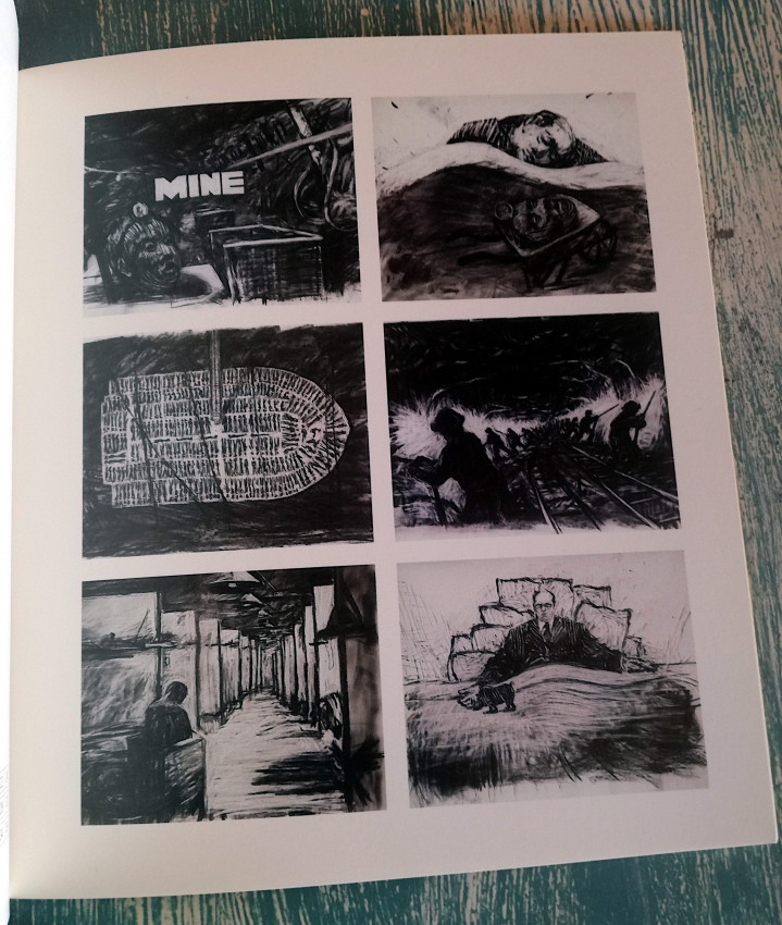 The tree is the main figure in this book. Here we find the main codes which belong to the artist—palimpsest and repetition. The pages create an analogy between book and tree, which is represented as the mother-source of creation before being transformed in a gibbet. Kentridge pursues his meanders where he evokes the smell of bakelite, vermouth risotto, a cemetery in the Congo, Sibyl, Cranach etc.