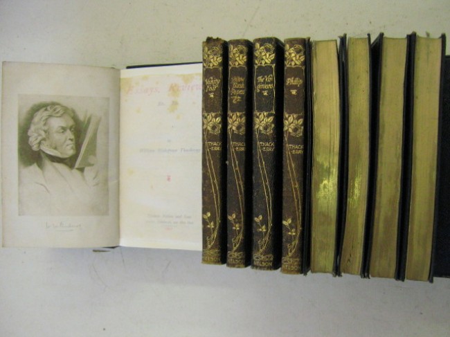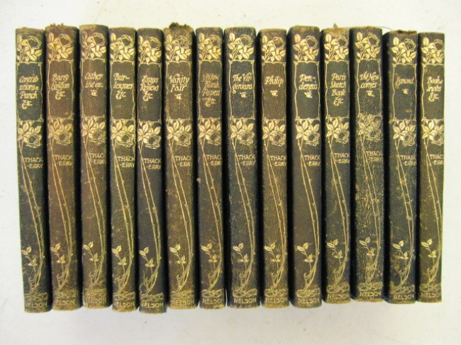 Set of 14 flexible navy leather-bound volumes, gilt-edging, gilt spine titles, comprising the best known works of the author.