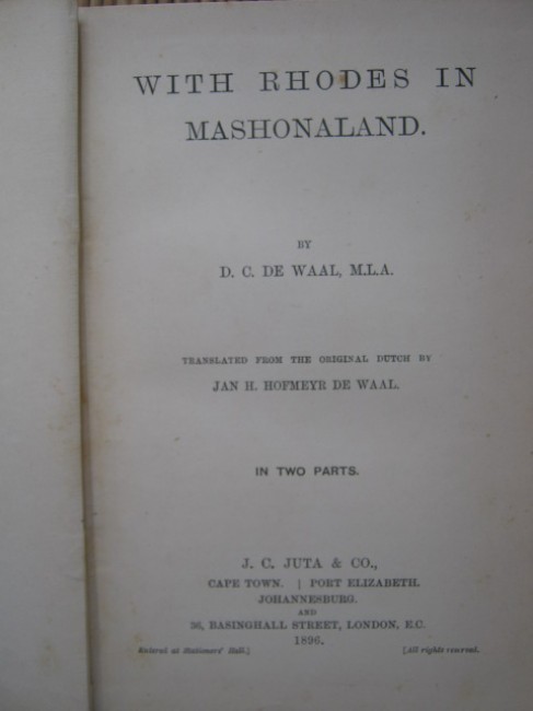 From the Preface: \"The contents of this book appeared a few years ago as a series of articles in the Zuid Afrikaansche Tijdschrift, a Dutch monthly magazine published in Cape Town. As Charterland or Rhodesia (as it has recently been named) was then, so to speak, a new-born babe to which the political eye of South Africa was turning with keen interest, the description of our travels was eagerly and appreciatively read . . . When I penned the contents of this volume, I did not in the least contemplate their being printed in English. Shortly after their publication in their original form, I was asked by numbers of my English friends to have them translated and published in book form. To this request I have at last yielded, and I trust the book will please them and all others who care to know something about the nature and history of Mashonaland - the future Eldorado.\"