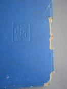 The contents - xix + 351 pp of unillustrated and unindexed text - are in better than good condition except that the fore-edge of the prelims and first 4 pp has been damaged. The front (sunned) endpaper is similarly damaged. An owner signature and note in ink are on the half-title page. The back endpaper and the leaf before the endpaper are also sunned. The blue cloth-boards, blind embossed to the panel and gilt to the spine, are badly damaged at the front edge and lower corner of the front cover (see images). The spine is bumped at the head and foot. The binding, however, remains firm.