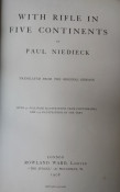 The majority of Niedieck's hunting excursions occurred in Africa and North America where he bagged most of the important species of big game. Also trips to Ceylon, China, New Zealand and India with a final short chapter on his favorite rifles.