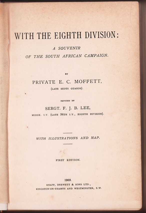 First edition. 222 + 47 pages casualty list of the Eighth Division compiled from official records, frontispiece group portrait of general Rundle and his staff, 34 illustrations, folding map, rebound in quarter brown leather with cloth sides, spine gilt, a very good copy.
