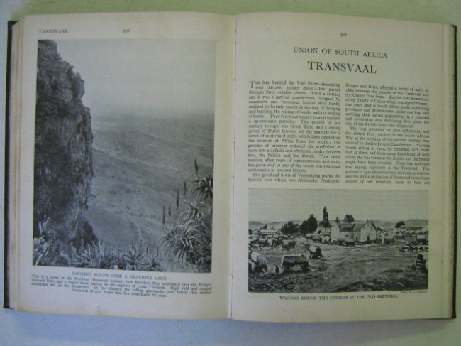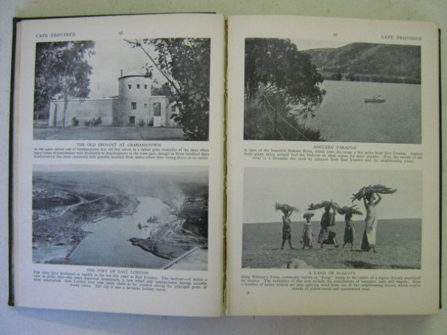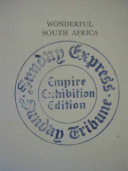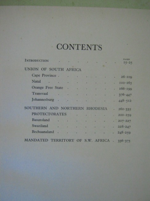 An excellent but rather under-rated black and white pictorial history of South Africa at around 1936, running through the history of the various provinces with excellent footnotes accompanying each photograph, and including regions such as Southern and Northern Rhodesia, South West Africa, Swaziland, Basutoland, Bechuanaland, etc... book condition is very good, dark brown boards with blind-stamped Springbok emblem on front and gilt spine title, end-papers and page-edges browned and spotted, slight wear to spine ends, some interior spotting, \"Sunday Express/Sunday Tribune Empire Exhibition Edition\" stamp on front half-title. 512pp. total. A heavy item (±1.6kg) - may require extra postage.