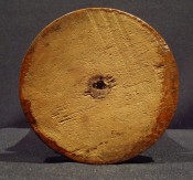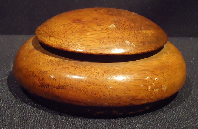 Possibly varnished later to hide cracks - it is likely that the metal strip was also added later.