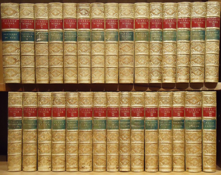 The Cambridge Bibliography of English Literature in 4 volumes. Volume III page 437: Editions published by Chapman and Hall. Library edition. 22 volumes 1858 - 9. Reissued in 30 volumes (including later works) 1861 - 1874, with new title pages and illustrations including original ones by Cruikshank and Hablor Knight Browne, and additions by Marcus Stone, John Leech, Clarkson Stanfield and others.
