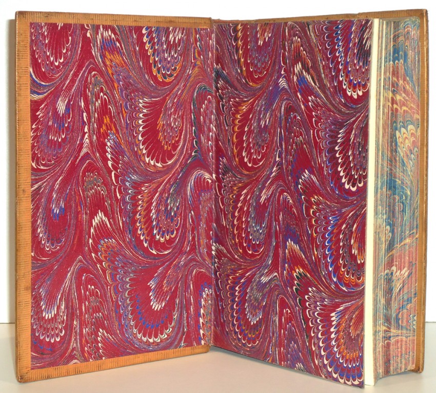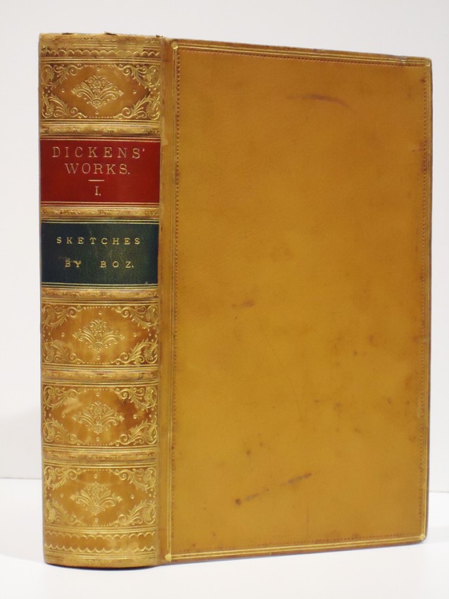 30 volumes: engraved frontispiece and additional vignette title to several volumes, others with frontispiece only, all illustrated with wood engraved plates with tissue guards, late nineteenth century full tan polished calf bindings, decorated gilt panels on the spines with red and green title labels gilt, marbled end papers and edges, very minor wear at the top of some spines, ownership mark G M Fowler 1886 on a front free end paper in the volumes, a near fine set.
