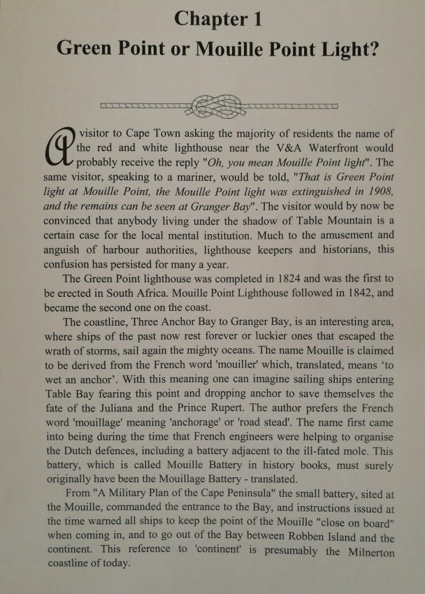 Other chapters are "Green Point or Mouille Point Light?" and "Shipwrecks from Mouille Point to Green Point".