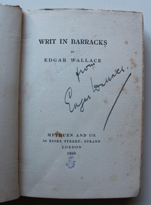 True first edition published by Methuen, London, 1900 (with August 1900 catalogue at rear). SIGNED by Wallace on the title page. Some age associated shelf rubbing along the edges. Bookplate of well-known Africana collector James Hamilton Russell on the front paste down. Contents clean internally with some light foxing on the initial pages. A collection of Boer War poems. This was the prolific author's second book. Wallace is also known as the co-author of the famous Hollywood film King Kong, which was the last work he completed before his death.