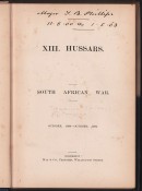 Hackett (R.G.) South African War Books An Illustrated Bibliography page 58: The regiment arrived in South Africa in early December 1899, taking part in the battle of Colenso and other engagements for the relief of Ladysmith. From August 1900 to the close of that year the regiment was chiefly employed along the Standerton - Newcastle line. In 1901 the 13th Hussars were brought to western Transvaal and employed near Klerksdorp. They later operated east of Pretoria under Brigadier-Gen. G. Hamilton and other commanders. The record includes a casualty list and a list of honours gained.