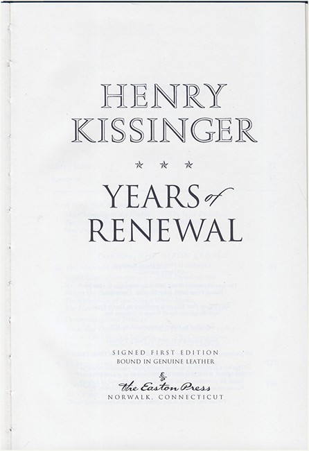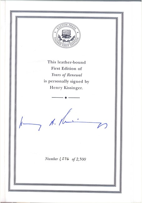 This leather-bound Collector's Edition is personally signed by Henry Kissinger.