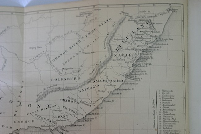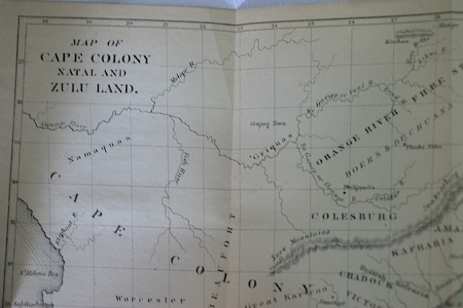 Hard cover, maroon cloth with gilt lettering and image of a giraffe on the spine. 351 pp, illustrated, with a fine foldout map of Cape Colony, Natal and Zulu Land. Slightly shaken, hinges beginning to come loose, corners and top and bottom ends of spine worn with some loss to cloth, internally clean.