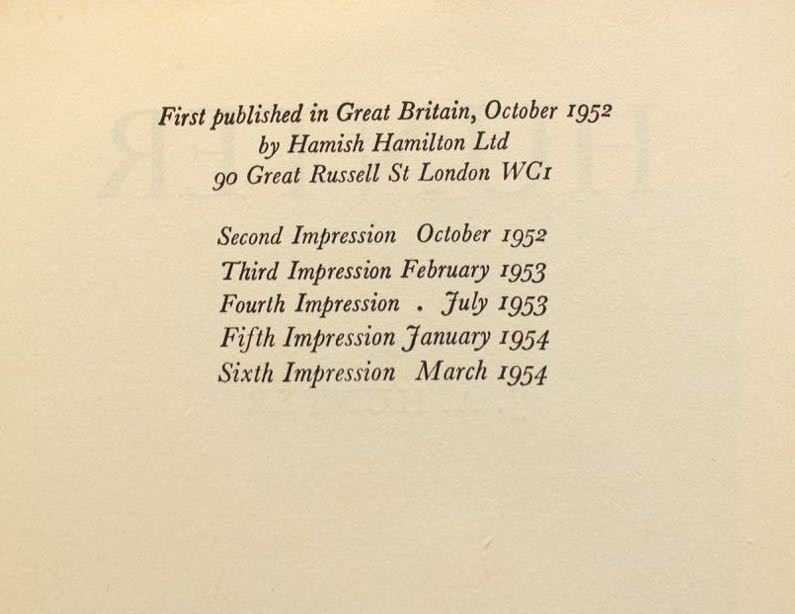 First edition published by Hamish Hamilton, London, 1954.