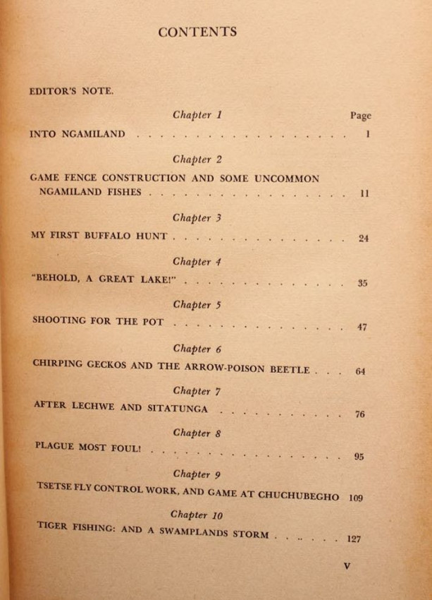 Dealing in the main with Ngamiland and Bechuanaland, this is no superficial record of a few hastily conducted trips. It is the story of a man who has spent a lifetime in these areas, and he takes us on crocodile shooting in the mysterious Okavango swamps, relates numerous adventures with buffalo, lions and leopards and other less well-known game of the swamplands, such as Lechwe and Sitatunga.