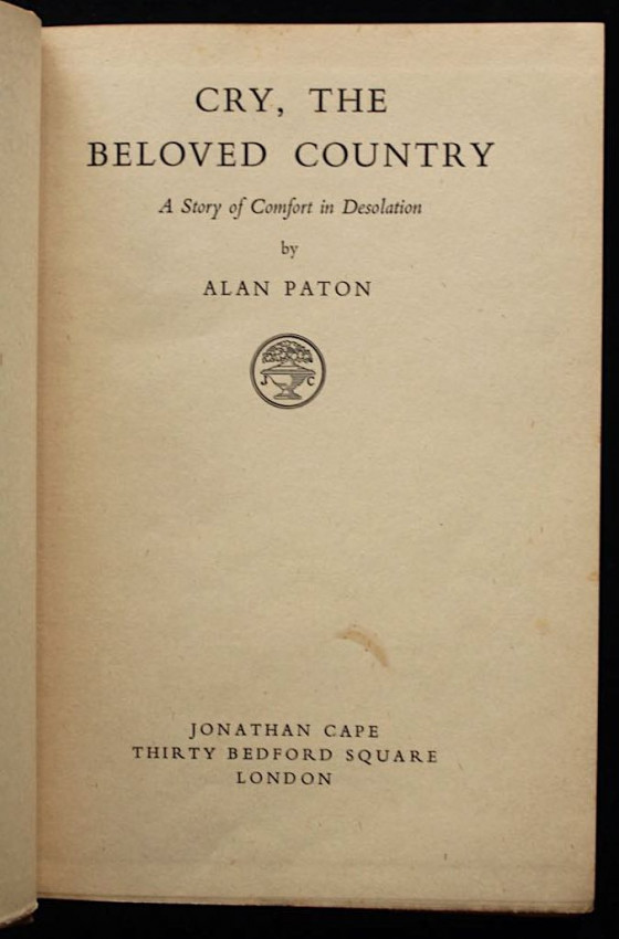 First editions of Alan Paton's first and second novels
