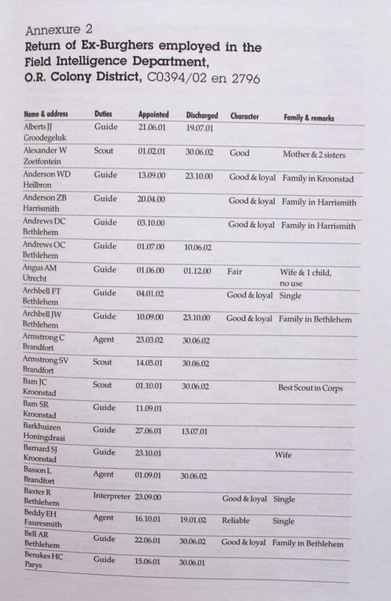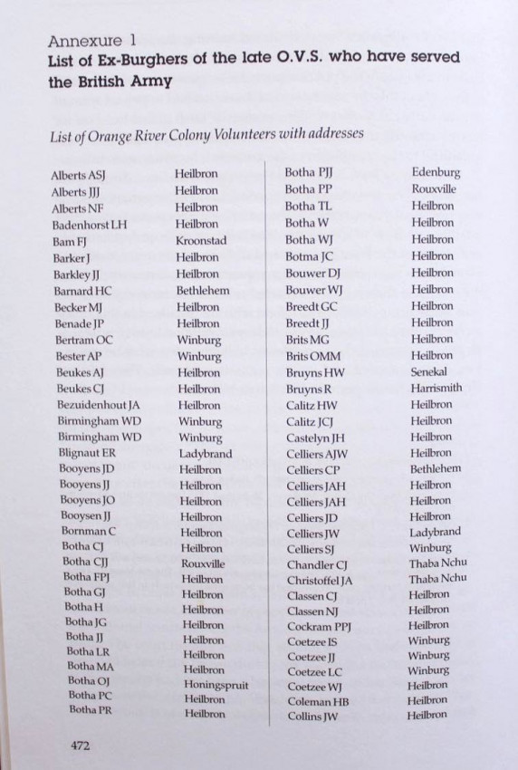 532pp. Expanded and updated from the first Afrikaans edition with name lists of National Scouts and Burghers in the Field serving the British Army.