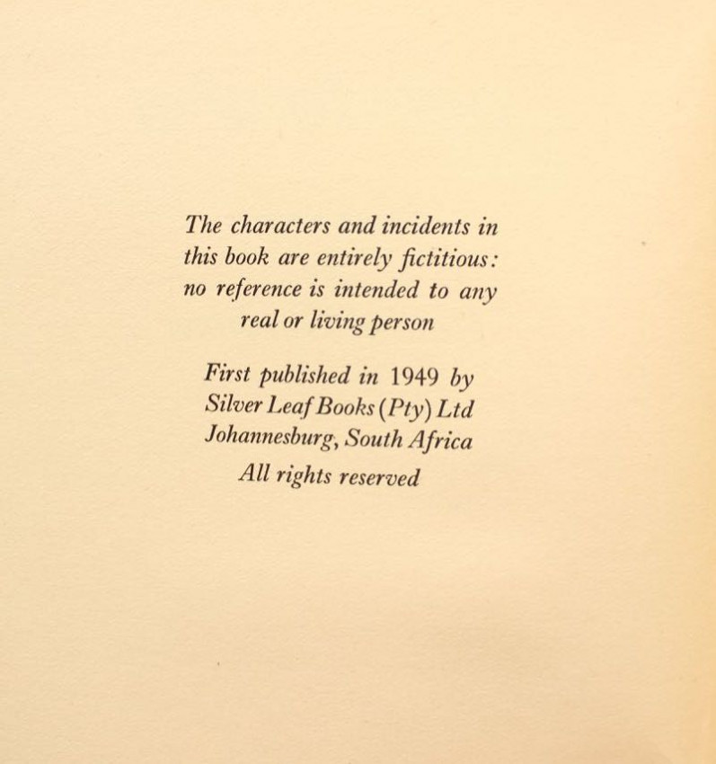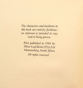 First edition of the author's scarce first book. Published by Silver Leaf Books, Johannesburg, 1949.