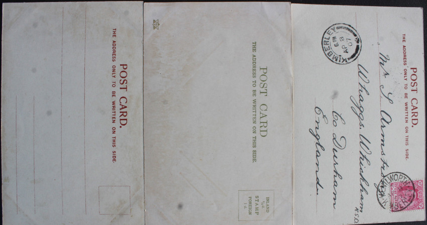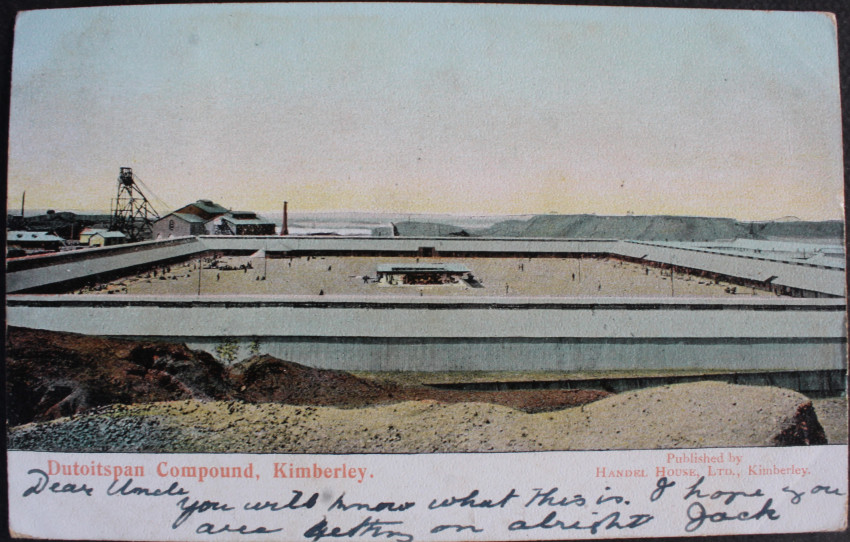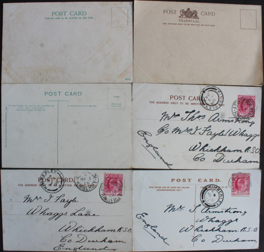 Used card with a one penny stamp and a Kimberley post office ink stamp at rear.