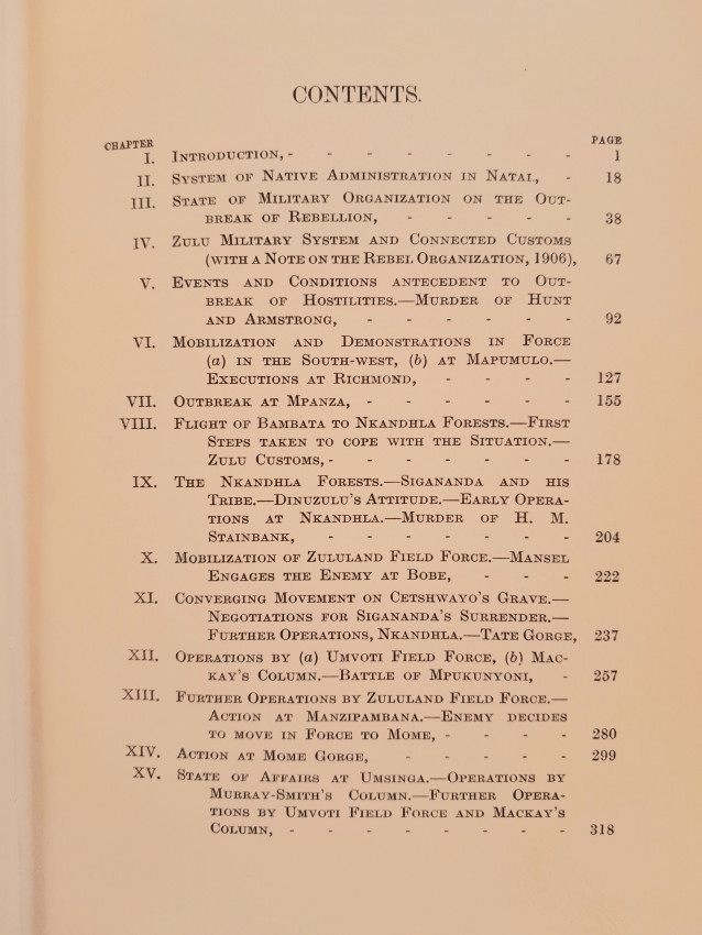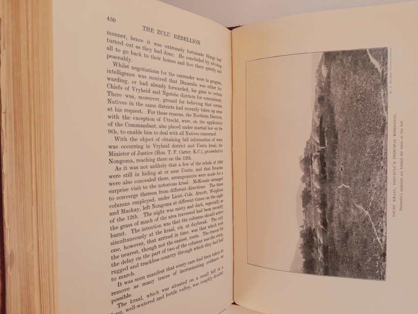 With five maps, six plans and twenty-five illustrations. Red cloth boards with gilt lettering on spine, frontispiece of Colonel Sir Henry E. McCallum (Governor of Natal, 1901-1907), xvi + 581 pages, b&w plates and fold-out maps. The glossary page edges are worn with loss, ex-libris card on verso of title page, stamps on end pages, markings on lower spine area, text pages clean.