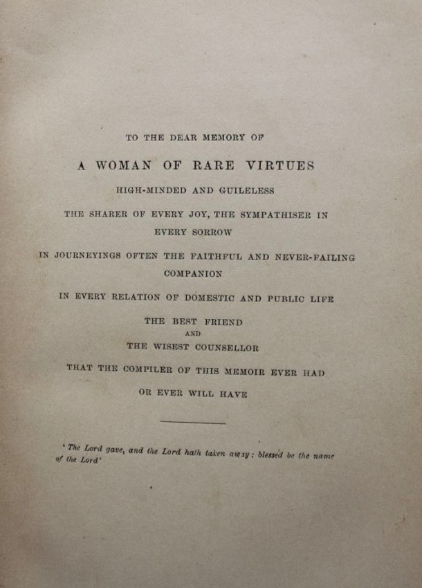 "Archdeacon Roberts, presented to him by the Editor Bishop Wilkinson, who was the real founder of the Diocese of Pretoria, and should have been its first Bishop. After a visit to S. Africa in extreme old age, he died in Khartoum on his journey through East Africa."