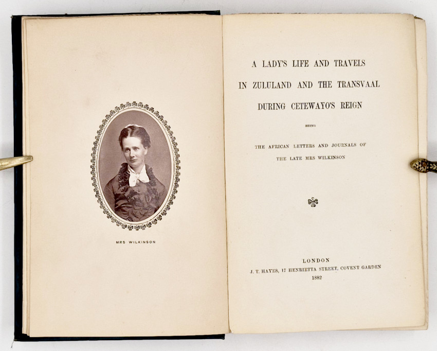 Mendelssohn (Sidney) South African Bibliography vol. 2 page 610/611, 'The letters composing this memoir are published with a view to giving an idea of the kind of life which a lady is called upon to live when she leaves her English home for the purpose of aiding "... missionary work . " in such a wild and savage country as Zululand." Mrs. Wilkinson accompanied her husband, together with his missionary party, to Zululand, sailing from Falmouth on July 6, 1870. They made some stay at Bishopscourt near Cape Town, afterwards proceeding to Maritzburg, Natal, and it is stated that on their arrival at this town they found that " everybody that can go is gone to the diamond fields." The road to their destination the mission station of Kwamagwaza was by the lower Tugela Drift to Ekowe (Etoywe), and en route the missionaries visited many known people in Natal, connected with mission and religious work in the colony.