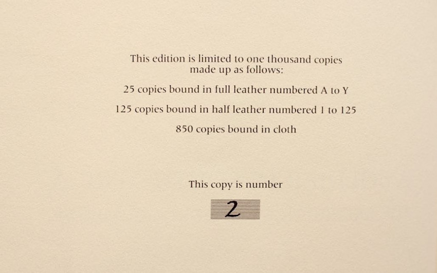 Publisher's de luxe edition, limited to 125 copies and bound in crimson half-leather goatskin with hand-marbled paper sides. Housed in original slipcase. This is copy number 2.