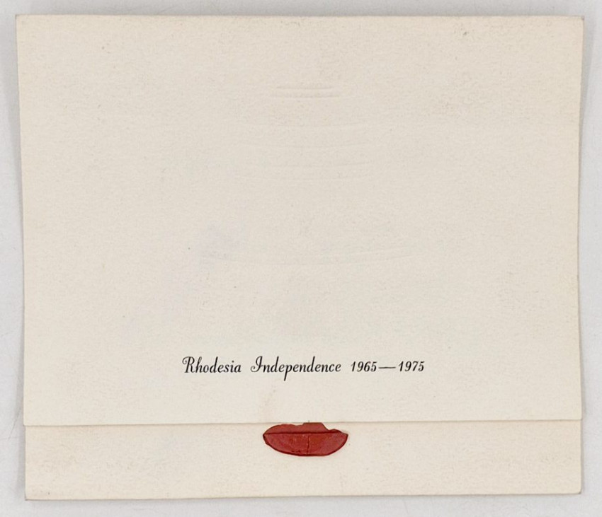 With a Certificate of Authenticity and a scroll tied with blue ribbon commemorating Rhodesian Independence 1965-1975.