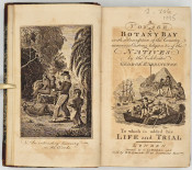 Pages 7-14 life of George Barrington, 15-18 Particulars Relating to the Trial and Conviction of George Barrington, 19-120 Voyage to New South Wales (chapters iv to vi devoted to the Cape of Good Hope), viii-88 A Sequel to Barrington's Voyage to New South Wales, (vi) An Official Register to the Crimes, Trials, and Executions of the Convicts of New South Wales.