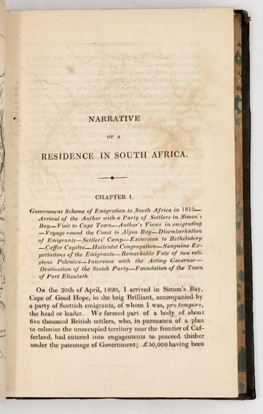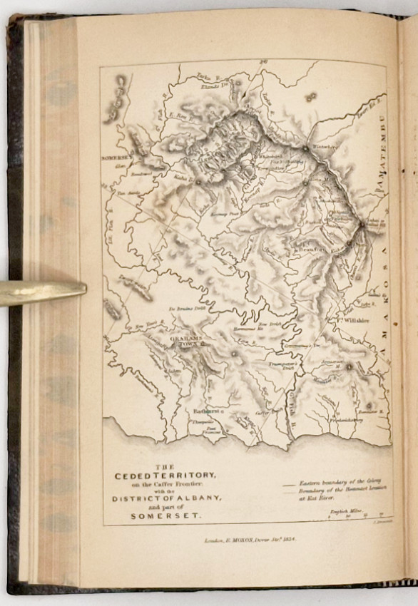 2 parts in 1, 528 pages, engraved frontispiece in part 1, 'The Bechuana Boy' engraved by C. Landseer, engraved title page vignette, engraved map of the frontier district in part 2, half morocco with cloth sides - corners worn, spine titled and decorated gilt in panels, marbled endpapers and edges, a very good copy.