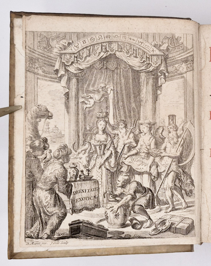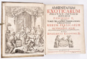Amoenitatum Exoticarum Politico-physico-medicarum Fasciculi V is the major work of Engelbert Kaempfer (1651–1716), a German physician and naturalist who travelled widely in Asia (Persia, India, Siam, Japan) first with the Swedish embassy under Ludwig Fabritius and later as a physician to the Dutch East India Company. Published in 1712 in Lemgo, North Rhine-Westphalia, Germany, in it he collected his observations on Natural history, plants, animals, geography of Asia and Africa. Medicine: treatments, medicinal plants, local practices. politics & customs: accounts of Japanese society, Persian court life, Southeast Asian culture. Travel experiences: especially his stay in Japan (he was one of the few Europeans allowed into the country during its period of isolation). It is divided into five major sections (decades); 1. Medical & Natural Observations. 2. Travels in Persia. 3.Natural History of India & Siam. 4. Japan (Customs, Politics, Society). 5. Japanese Natural History.