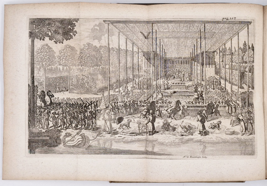 Howgego (R.J.) Encylopedia of Exploration to 1800, Potts Point NSW, 2003, KI (pages 562/3), 'Kaempfer, Engelbert, German traveller, naturalist and physician (1651-1716). Born at Lemgo in Westphalia, his father, Johannes, was pastor of the church of St Nicholas. Kaempfer studied ao Lemgo, Hameln, Lüneberg, Hamburg, Lübeck and Danzig. In 1676 he graduated with a doctorate in languages, history and medicine from Cracow, then spent four years in Königberg studying medicine and natural science. After leaving Königberg he moved to Uppsala (1n 1681) and in 1683 joined, as secretary, an embassy under Ludwig Fabritius, sent by Charle XI of Sweden to Russia and Persia.' Later Kaempfer joined the fleet of the Dutch East India Company (VOC) in the Persian Gulf as chief surgeon. In September 1690 Kaempfer arrived in Nagasaki, the only Japanese port then open to Dutch and Chinese ships. Kaempfer stayed two years in Japan, during which time he twice visited Edo and the shÅgun Tokugawa Tsunayoshi. He conducted extensive studies on local plants, many of which were published in his "Flora Japonica" (part of Amoenitatum Exoticarum).