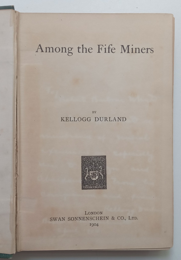 Kellogg Durland, 1881-1911, was an American journalist and social reformer who spent four months living and working with the Fife Miners. He wrote a book about his experience “Among The Fife Miners” published in 1904. (http://www.scottishmining.co.uk/395.html)