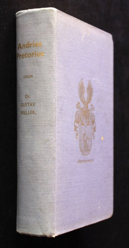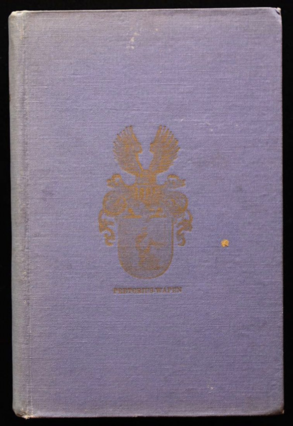 Publisher's blue cloth binding with Pretorius family crest in gilt on front panel.