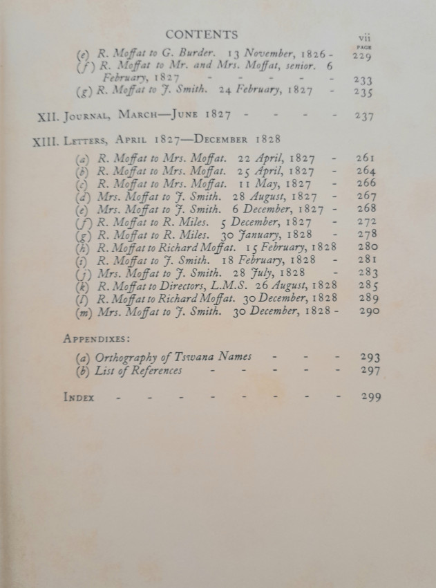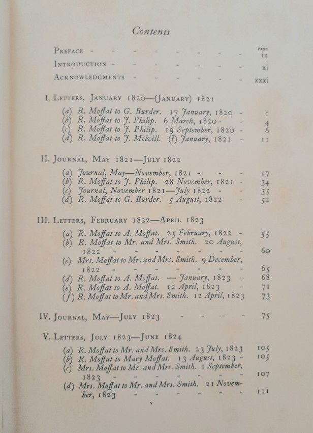 Being the journals and letters of Robert and Mary Moffat 1820-1828. Central African Archives, Oppenheimer Series Number Five. Red cloth boards with gilt on front and spine, pages xxix + 308, with fold-out map at the back. Occasional foxing, else very good.