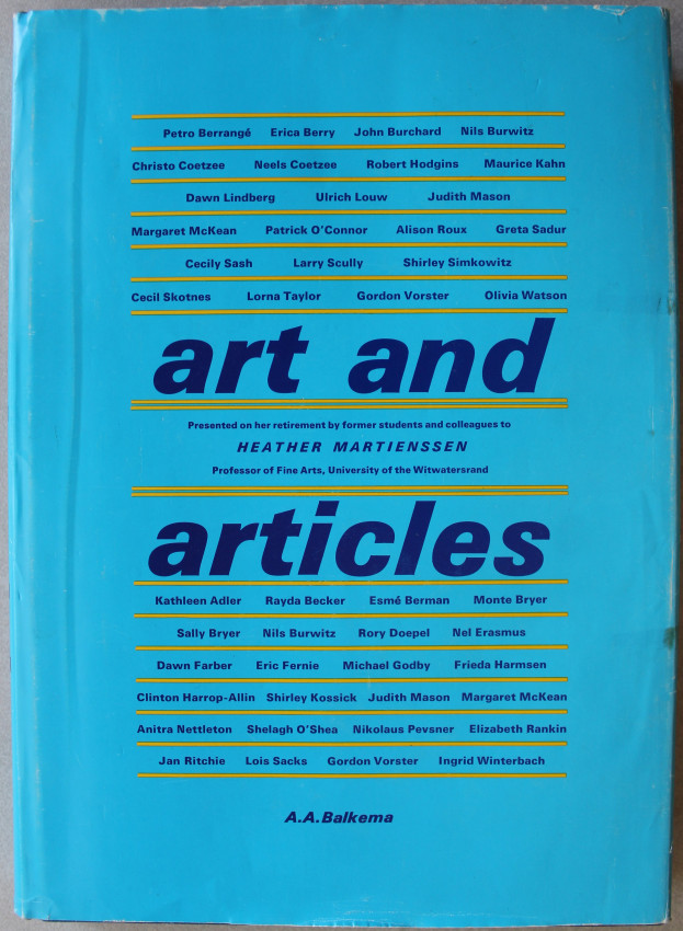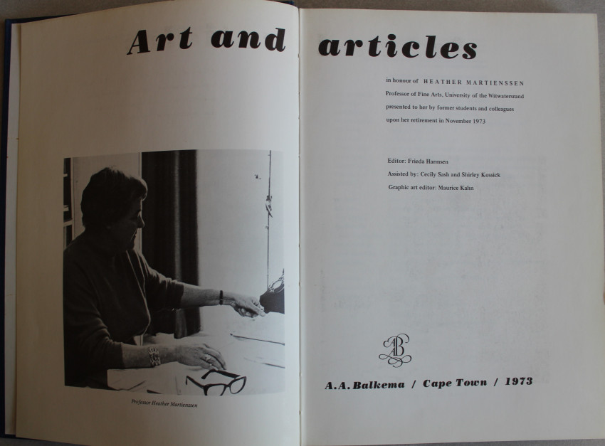 Art and Articles in honour of heather Martienssen, Professor of Fine Arts, University of the Witwatersrand, presente to her by former students and colleagues upon her retirement in November 1973.