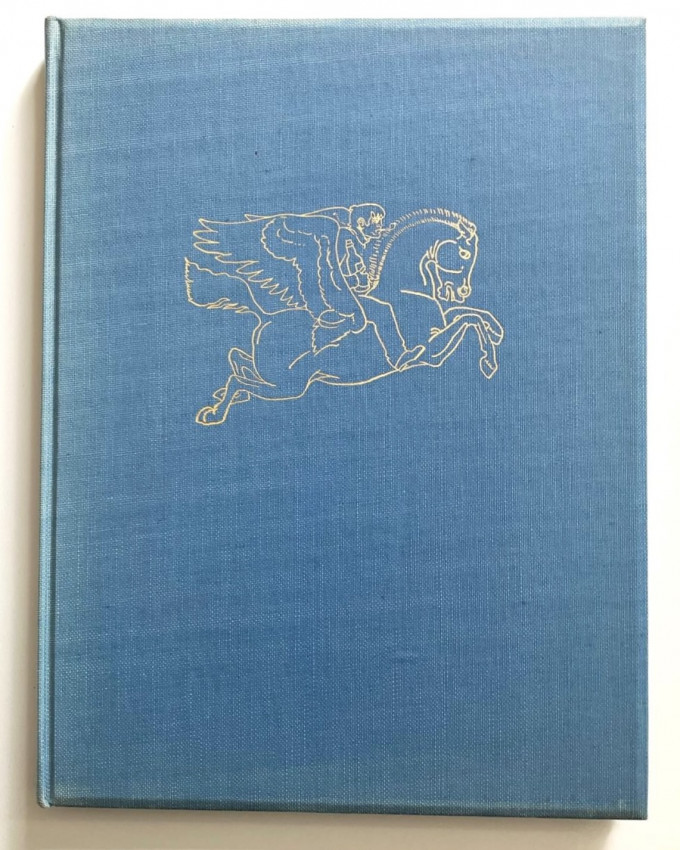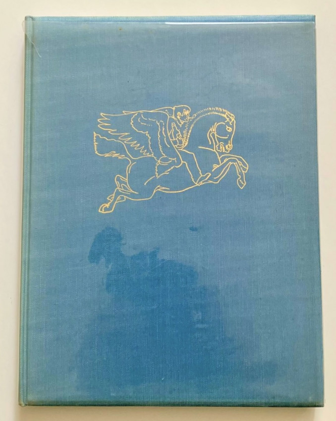 Hardcover copy (pp. [vi], 49, [1] + frontispiece) with original blue cloth boards covered in a clear acetate jacket. The spine is lettered in gilt and the front board is blocked in gilt. The top of the text block has a gilt edge. The title-page and dedication leaf are printed in blue and black. The attractive colour frontispiece (by Kathleen Hale) has the appearance of a blockprint. The jacket has a few marks and light scuffs with two small tears at the top of the spine.