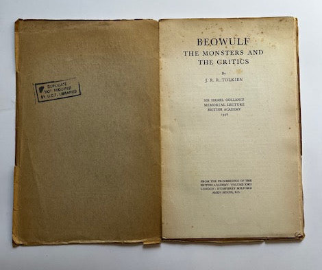 "Published 1 July 1937 at 3s, 500 copies printed. Tolkien read his landmark Sir Israel Gollancz Memorial Lecture on 25 November 1936. It was published separately six months before its appearance, in Vol. 22 of the printed annual 'Proceedings' of the Academy, published 30 December 1937." from Hammond and Anderson "J.R.R. Tolkein, a Descriptive Bibliography"