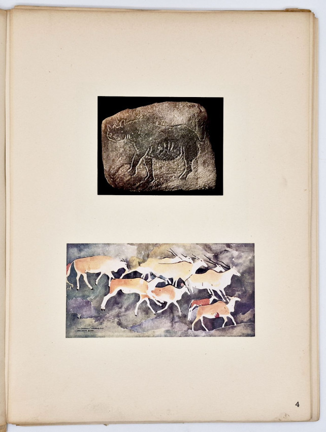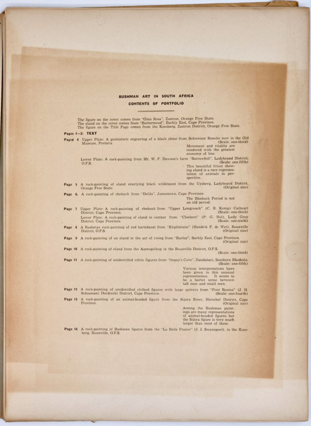 Contents of Portfolio - a list and captions to the plates, 21 plates (numbered 4 - 25) - 15 with coloured reproductions of paintings tipped on and 8 with black &; white reproductions and photographs, without the extra plate of 'Rock Painting from "Barrow Hills".