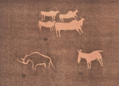 ‘In 1908 a selection of Tongue copies were exhibited at the South African Public Library in Cape Town and then at the Royal Anthropological institute in London. In 1909 a series of copies were brought together in a handsome portfolio of 54 plates and an accompanying book with two collotype plates and eight black-and-white photographs.