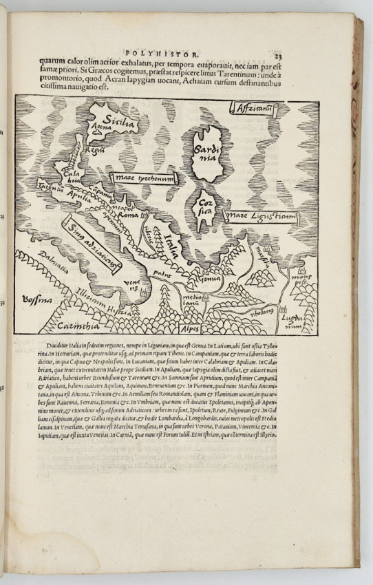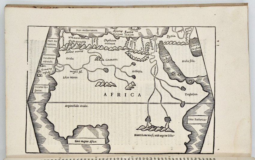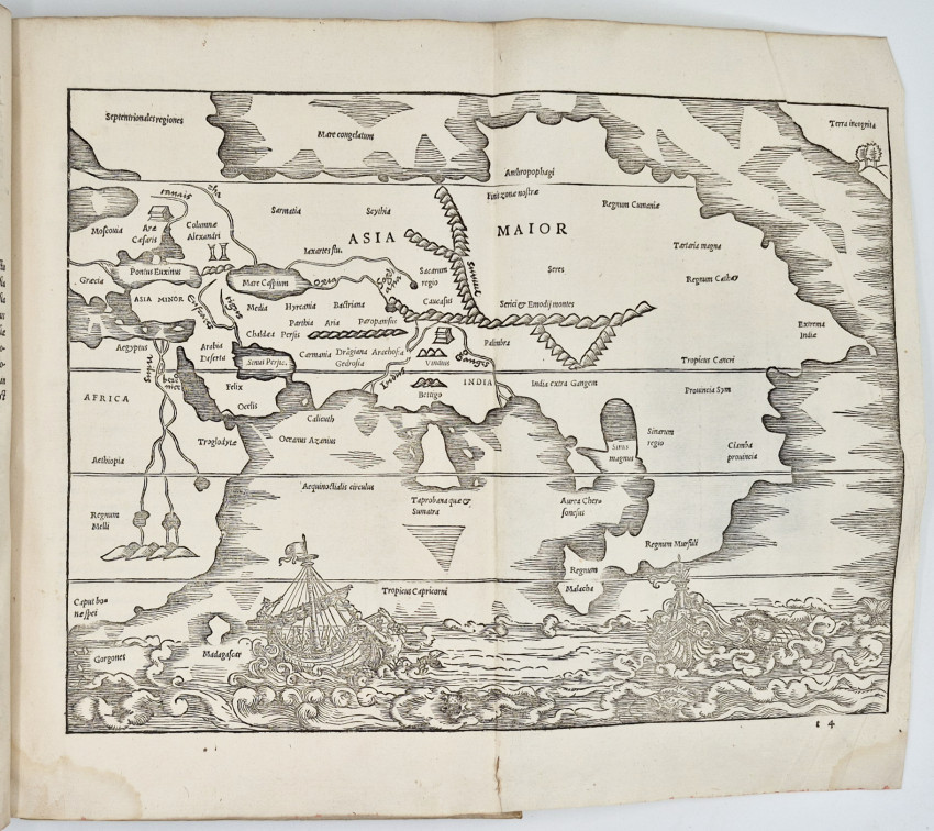 'First edition with Munster's commentaries and woodcut maps. This work represents the non-Ptolemaic, non-scientific tradition of geography that dominated the Middle Ages. Solinus and Mela specialised in depicting the inhabitants of unknown lands as grotesque creatures. The most important legends are no doubt those which stimulated the early European exploration of Asia, Africa and America. A number of early expeditions beyond the confines of medieval Europe were at least in part motivated by attempts to confirm or disprove various legends. The most persistent of these concerned a mighty Christian king, Prester John who was thought to rule over the benighted masses, first of southern Asia and later somewhere in eastern Africa.