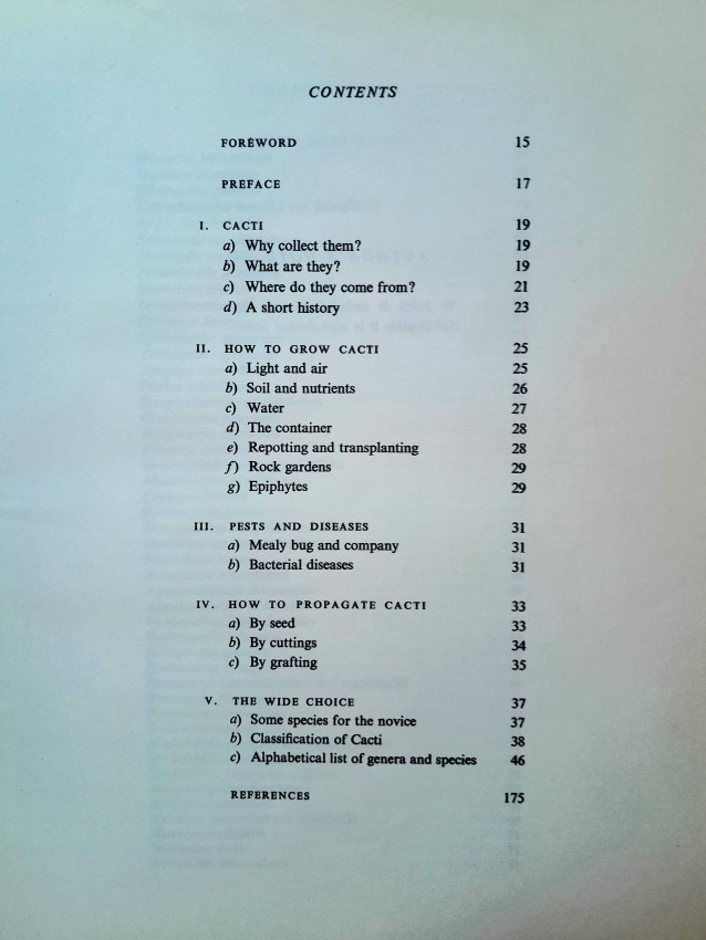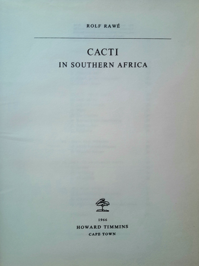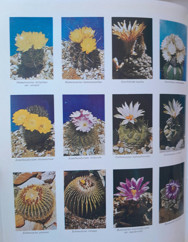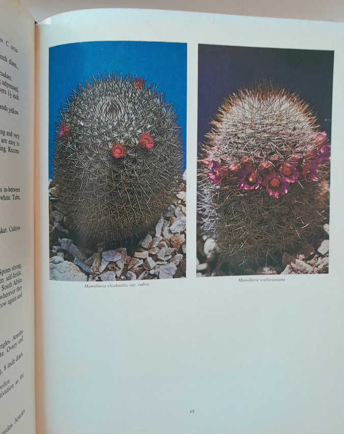 From the sleeve: "Here is a complete classification of all known cacti, there is a thoroughly comprehensive key system enabling the reader to identify almost 2000 different species of all 232 genera. Each genera is treated separately with special hints on cultivation".