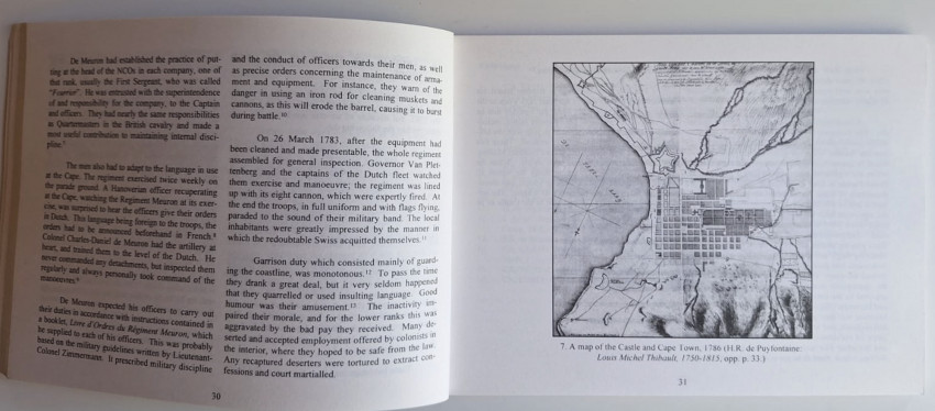 6. The Swiss Regiment Meuron At The Cape And Afterwards , 1781 - 1816 by A. Linder, published by Castle Military Museum, Cape Town 2000.143 pp. Marks on front cover otherwise clean.illustrated