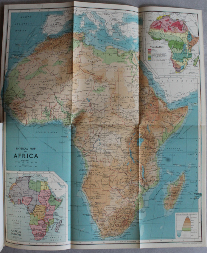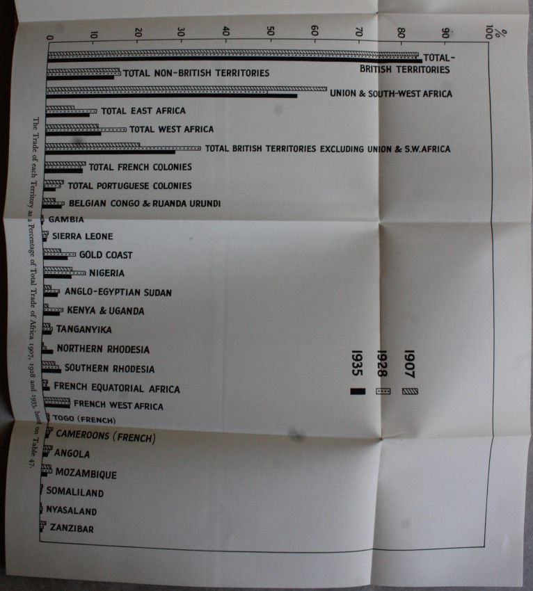 Light red cloth boards with the title in golden gilt to the spine. 487 pages. Folding colour map of Africa and many folding charts. A copy in very good condition.