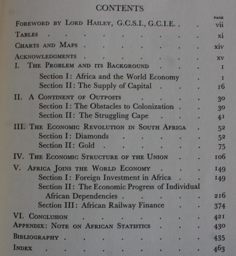 Contents: Africa and the World Economy. The Supply of Capital. Obstacles to Colonization. The Struggling Cape. Diamonds. Gold. Foreign Investment in Africa. African Railway Finance.