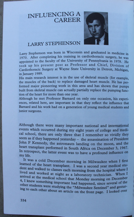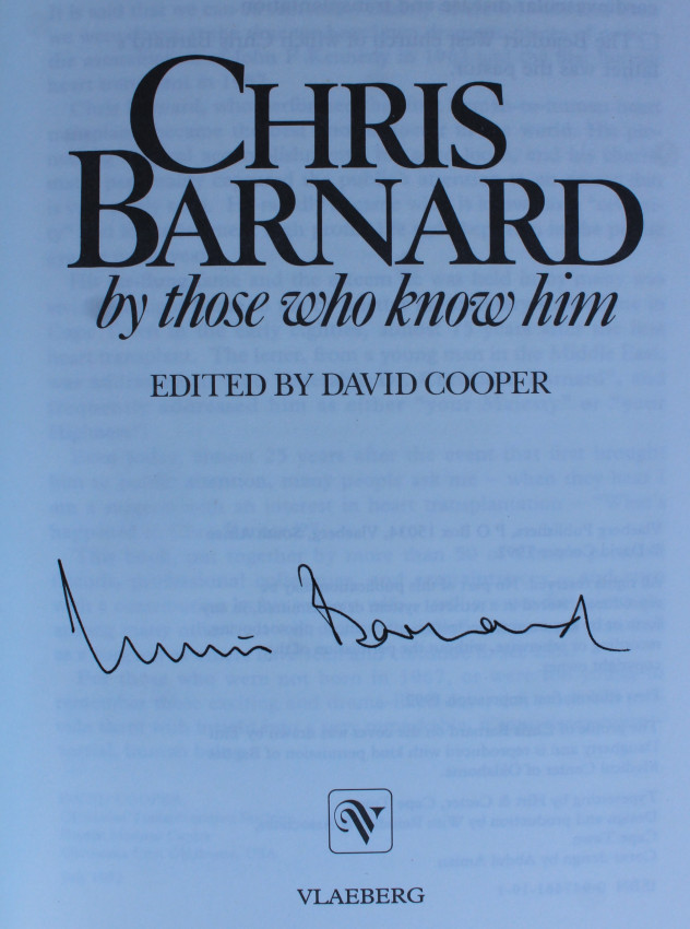 To mark the 25th anniversary of the first heart transplant performed at Groote Schuur Hospital in Cape Town, sixty colleagues and acquaintances from throughout the world have put together a collection of reminiscences about Chris Barnard. The various contributions throw more light on Barnard's character, personality and expertise as a surgeon, writer and speaker.