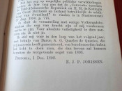 Original burgundy publisher's cloth; Text in Dutch; Collation complete - Half title, Title page, LVI, 721 pages; The binding actually feels strong, firm and tight and isn’t really splitting anywhere. Some rubbing, spine and boards bumped to the extremities, corners more bumped, traces of partly slight discoloration and a few surface scratches. Joins are whole and secure, rear hinge little weak, with incipient paper surface cracking, but still secure and whole. Front free endpaper and half-title starting loose. Internally well preserved, clean and very bright, no marks or foxing throughout, only little yellowing. Minimal traces of wear on the edges of the paperback. A sound copy.