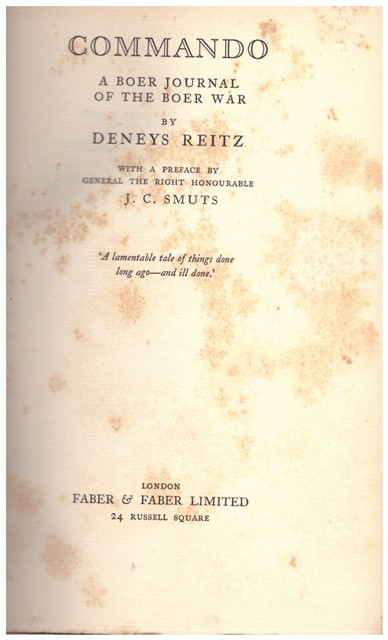 "A lamentable tale of things done long ago- and ill done." "Reitz had the uncanny knack of living through the war as though leafing through the pages of an adventure story" Thomas Pakenham. THE BOER WAR.
