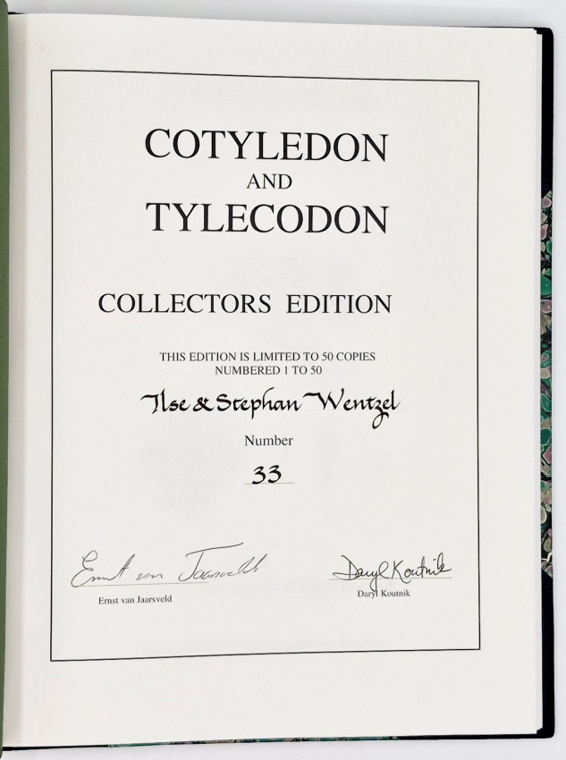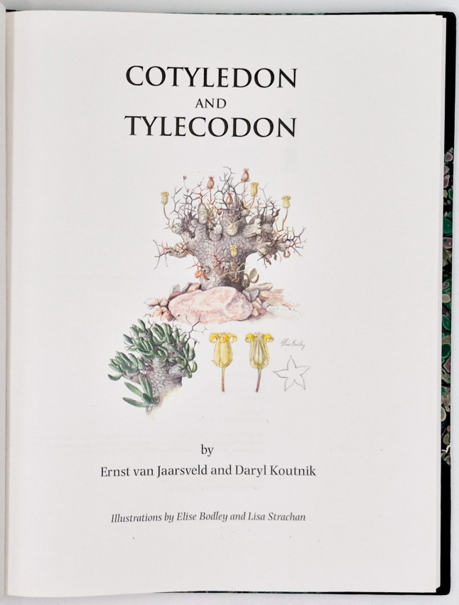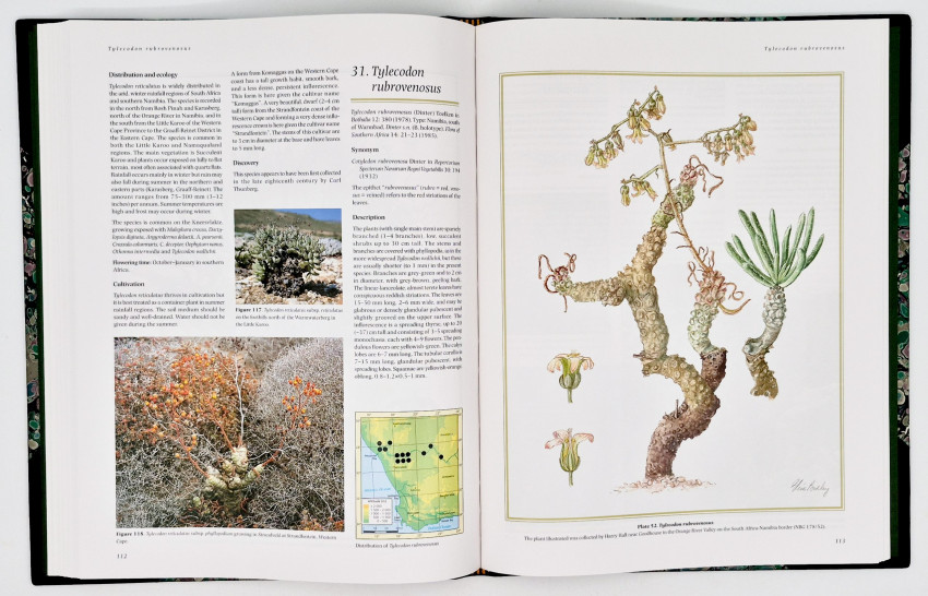 ‘This book is the first account to cover the closely related genera Cotyledon and Tylecodon. It represents information gathered over the past 25 years. Each species is described and illustrated by means of watercolour paintings and habitat photographs of the plants. Most illustrations were prepared by the late Elise Bodley and a few by Lisa Strachan. Distribution maps are included. The book covers the plants’ adaption to arid environments, their distribution in Africa, cultivation and interesting ethnic uses, a historical review of botanical exploration and keys to simplify identification.’ Editor’s note.