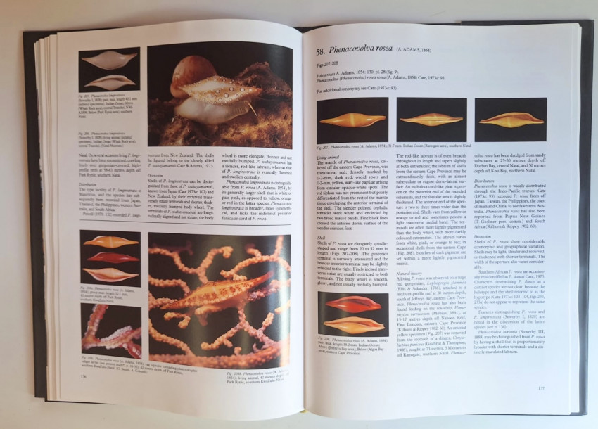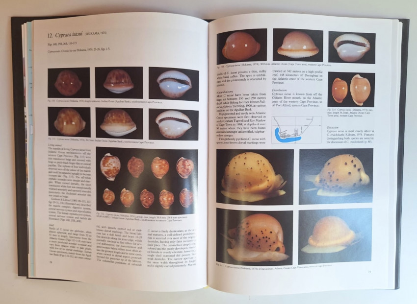 Although the primary objective of this study is to concentrate on formerly poorly known species endemic to southern Africa, Angola and Mozambique, detailed accounts of many Indo-Pacific and West African species are also provided. The more than one hundred species accounts contained in the book are accompanied by lucid colour accurate photographs of shell and animal variation, and distributional maps. Many of the species discussed were discovered and described during the past two decades. More recently, others for the first time, were recorded from this biologically unique southern African region. William Liltved, an internationally recognized authority on the systematics of the Cypraeidae, Ovulidae and Triviidae, has produced second enlarged edition of Cowries and their relatives of southern Africa (2000).