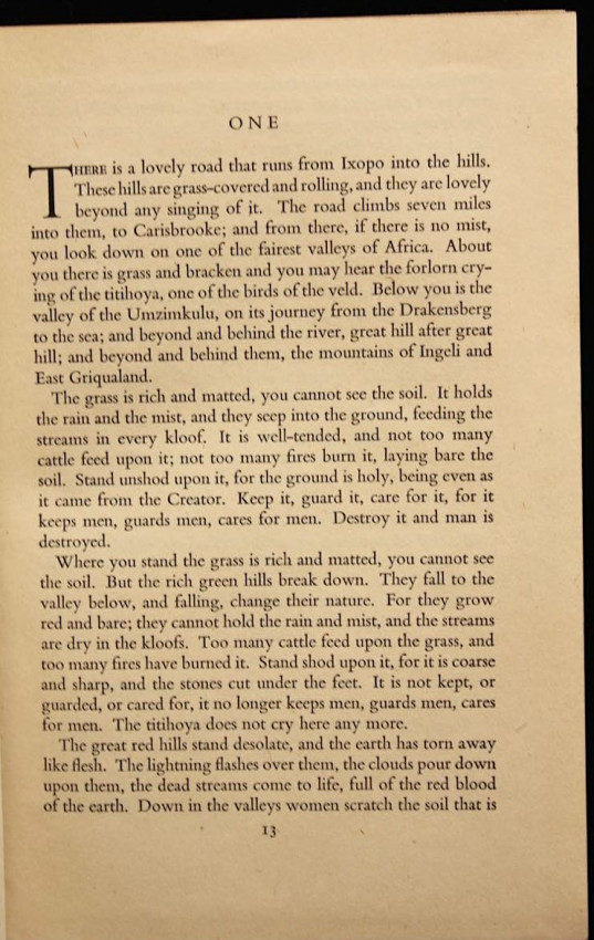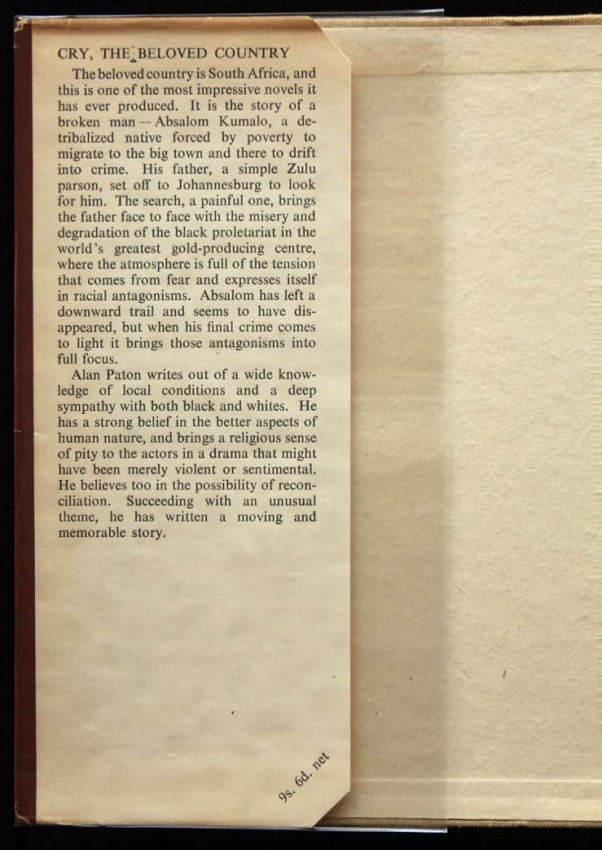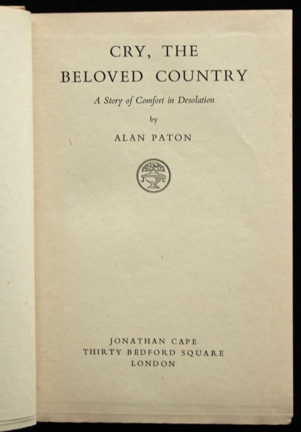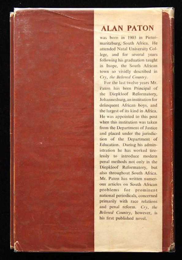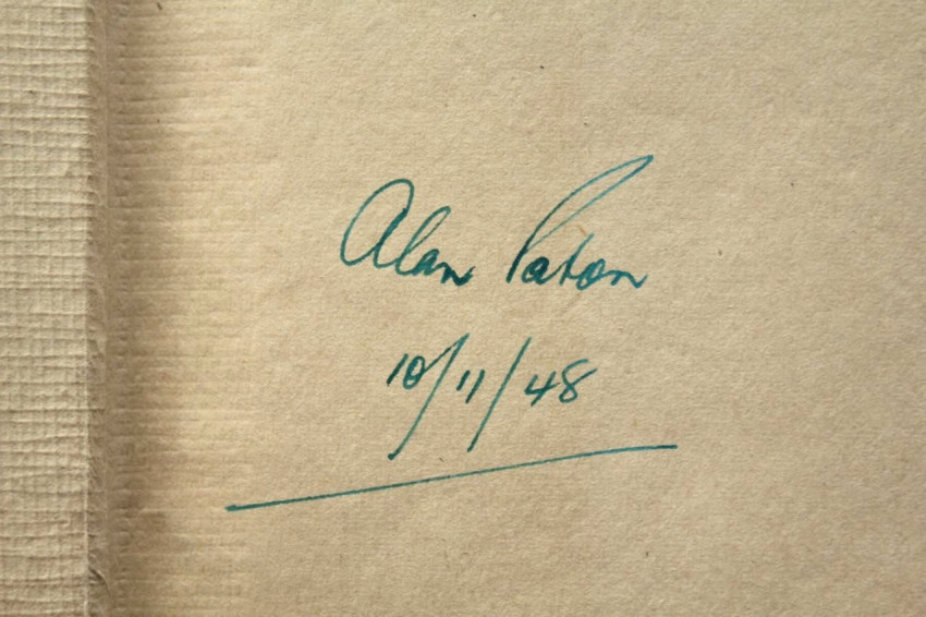 Signed & dated by the author in green ink on the front endpaper, "Alan Paton, 10/11/48". Period-signed copies, particularly those from the year of publication, are very scarce. The signature of the first owner of this copy, also dating from 1948, is on the top corner.