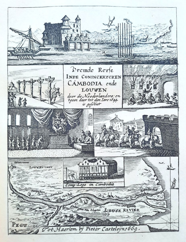 - Folding frontispiece bird's-eye view of Eauweck (the main city of Cambodia), also known as Lawec/Lovek/Longvek/Khum Peam Lvek (a reproduction of the view by Johannes Vingsboom from 1665);